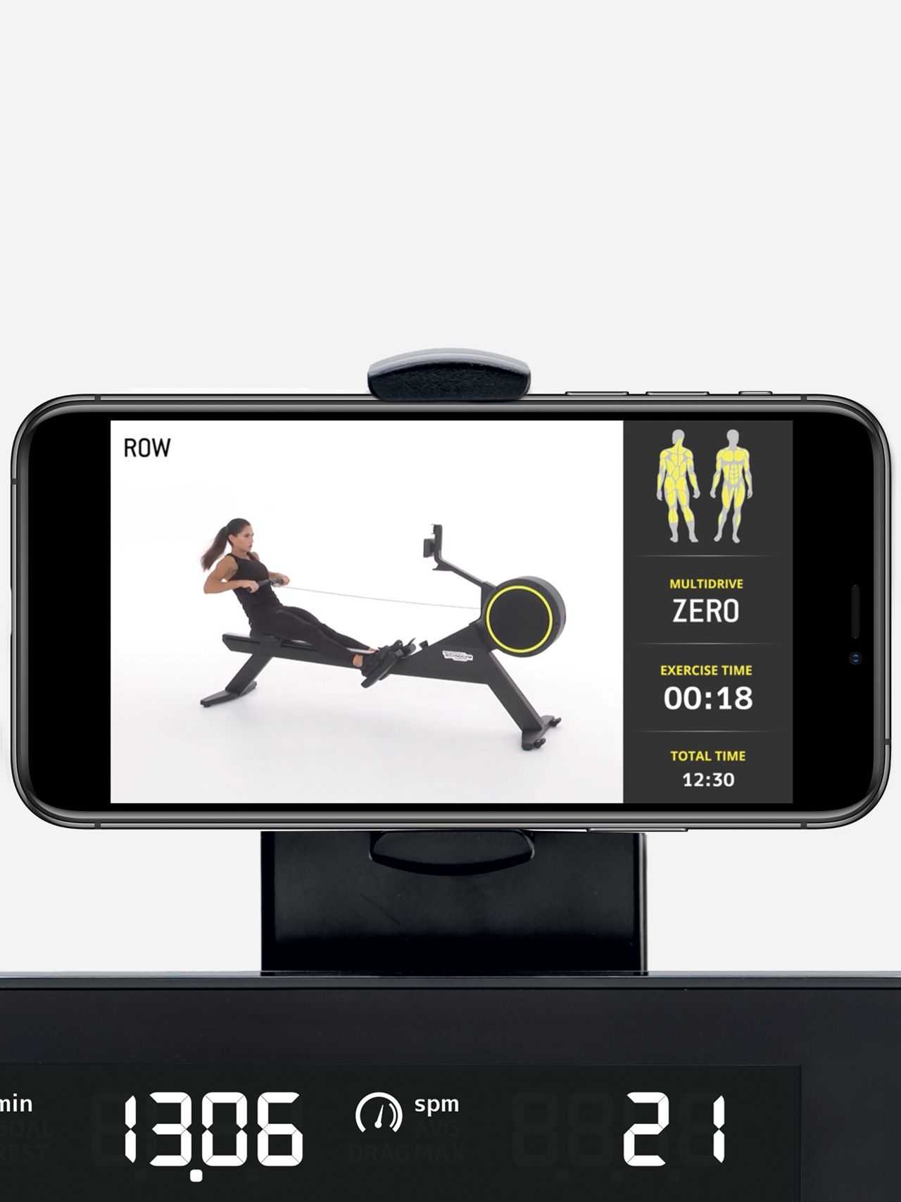 Turn the resistance dial to rowing mode for a cardiovascular workout or to power mode for a resistance workout with additional load that challenges your stamina.